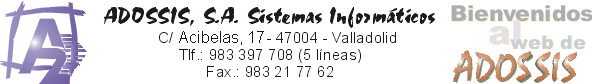 | Ante cualquier duda puede puede llamar al Teléfono (+34) 983 397708, o bien enviar un correo electrónico a mantenimiento@adossis.es . | ||